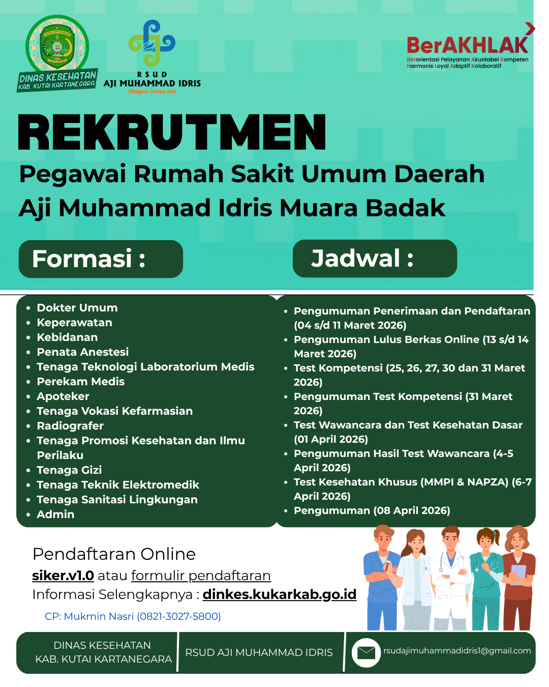 - Test Wawancara dan Pemeriksaan Kesehatan secara Offline untuk Named, Nakes dan Non Nakes di RSUD AMI di Muara Badak (tanggal 1 April 2026) Klik Jadwal Test Kompetensi dan Wawancara